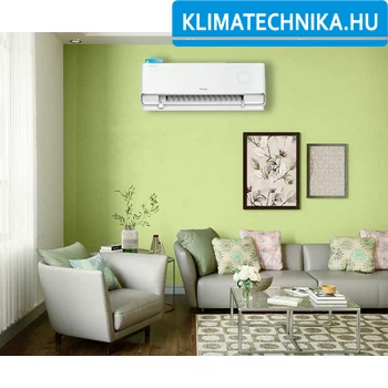R32, Inverteres splitklíma berendezés, hőszivattyús kivitel, infra szabályzóval, beépített wifi, alaplemez fűtés, okos otthon kompatibilis.